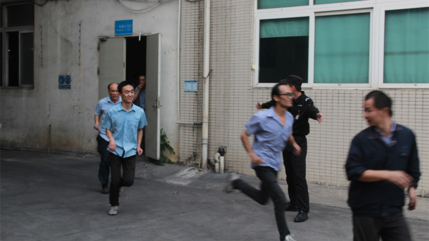 下晝16:40,,,,,消防警鈴響起,,,,,員工們紛紛彎下腰用手或衣袖捂住口鼻,,,,,迅速而有序地向客棧外撤離,,,,,兩分鐘不到,,,,,即在空曠的停車場(chǎng)重新薈萃完畢,,,,,組成方隊(duì)清點(diǎn)清靜逃生職員。。。。。